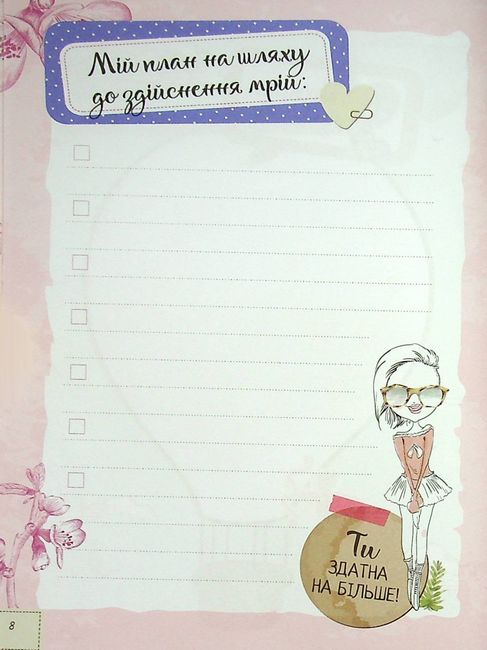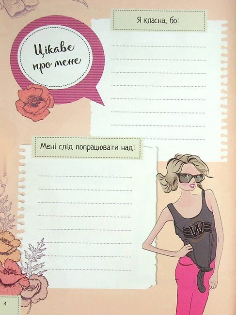 «Записник для дівчинки» — незамінний помічник кожній стильній та сучасній тінейджерці. Саме в ньому можна фіксувати важливі події свого життя. Ця яскрава книжечка допоможе скласти план тренувань, виробити корисні звички, спланувати мандрівку, а також поділитися найпотаємнішими бажаннями, мріями та спогадами. Будь у тренді — веди щоденник!