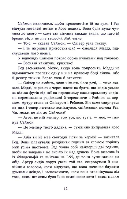Новий захопливий роман неперевершеної майстрині трилерів! На весняні канікули шестеро друзів вирушають на відпочинок у фургоні, який взяли напрокат. І наче все чудово і весело… хіба що кілька разів випадково звернули не туди… Та коли друзі розуміють, що застрягли десь у глушині без сигналу GPS і мобільного зв’язку, уже не так весело… А коли хтось прострілює їм усі шини та бензобак, стає зрозуміло — це геть не випадковість. Десь назовні в темряві за ними спостерігає убивця. А в когось у цьому фургоні є секрет, що вартує життя…