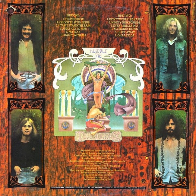 Thunderbox, що вийшов 1974 року, - це дев'ятий студійний альбом гурту і один із найбільш «брудних» і сирих у їхній дискографії. Це не той випадок, коли альбом шліфується до блиску: Thunderbox звучить як джем-сесія в гаражі, де піт, віскі і перевантаження йдуть в одному ритмі. Тут багато каверів: від R&B до фанк-класики - I Can't Stand the Rain, Oh La-De-Da, Anna (Go to Him). Але Humble Pie все роблять по-своєму - з хрипом, вагою і чарівним грувом. Marriott співає з душею і вогнем, а ритм-секція працює як один потужний мотор.