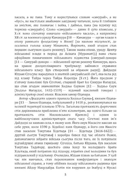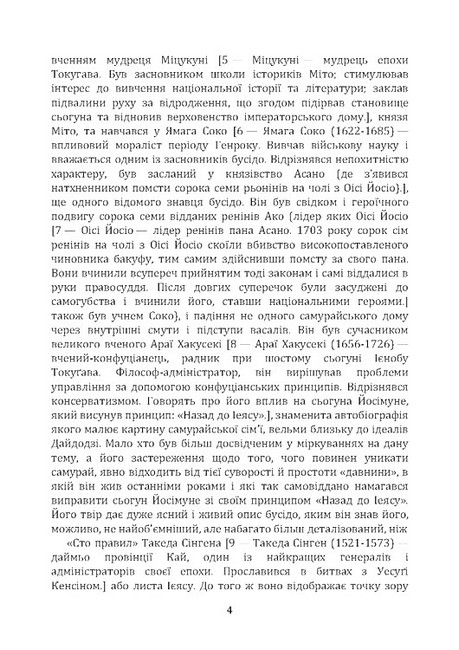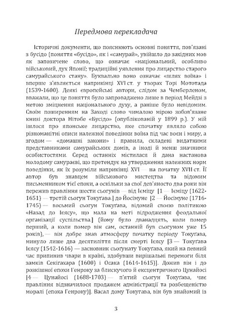 Перші самураї з’явилися в Японії ще в VII ст. Минав час, сформувалися підвалини морального кодексу самурая, що пізніше перетворився на звід заповідей «Шлях воїна» («Бусідо»). Століття змінювалися тисячоліттями, але й донині моральний кодекс самураїв не втратив своєї актуальності. У цій книзі зібрано найавторитетніші трактати і керівництва, присвячені бусідо. «Будосьосінсю» Юдзана Дайдодзі, «Хагакуре» Ямамото Цунетомо і «Книга п’яти кілець» Міямото Мусасі неодмінно стануть духовними супутниками кожного, хто шукає відповіді на головні питання у своєму житті.