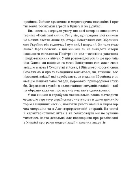 У своїй новій книжці Андрій Харук детально описує тернистий шлях формування української військової та воєнізованої авіації з моменту здобуття незалежності й до початку повномасштабного вторгнення. Він розповідає, як змінювалася з роками структура та склад нашої авіації, як модернізували літальні апарати і як українському летунству вдавалося забезпечувати перевагу над противником у зоні АТО.