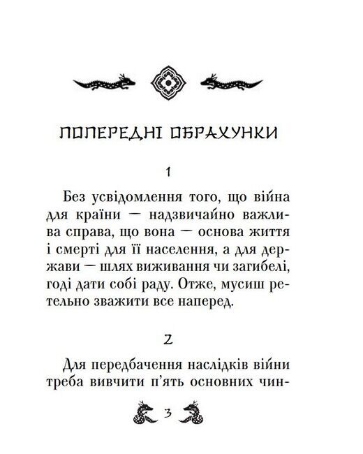 Віддавна й донині військовий трактат «Мистецтво війни», авторство якого приписують легендарному китайському полководцю і стратегу Сунь-дзи, не втрачає актуальності. І не тільки тому, що людство за понад дві тисячі років так і не навчилося розв'язувати проблеми миром, раз у раз застосовуючи силу там, де місце здоровому глузду. Головними принципами стратегії і тактики воєнного протистояння, викладеними в ньому, нині успішно послуговуються в бізнесі, дипломатії, політиці, власне, в усіх видах діяльності, які потребують стратегічного мислення.