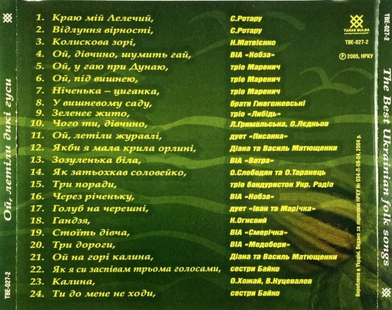 9 | Тріо "Либідь" – | Зеленеє Жито | 3:21 |