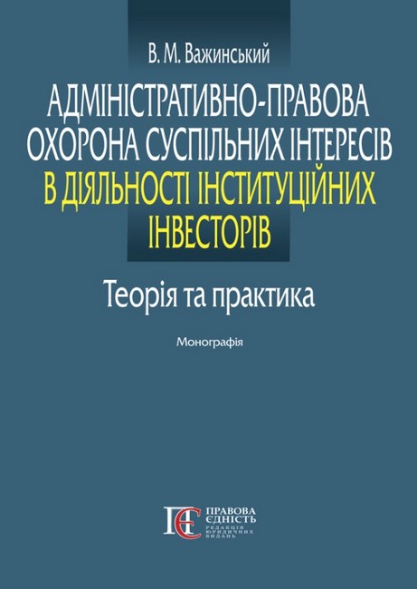 У монографії розглядаються проблемні питання адміністративно-правової охорони суспільних інтересів в діяльності інституційних інвесторів. Виходячи з результатів аналізу наукових джерел, присвячених теорії адміністративного права, господарського права, фінансового права, податкового права, норм національного та зарубіжного законодавства у сфері регулювання інвестицій та інвестиційної діяльності, законодавства Європейського Союзу, вітчизняної практики судових і правоохоронних органів у монографії розкривається поняття механізму адміністративно-правової охорони суспільного інтересу в діяльності інституційних інвесторів, його співвідношення з поняттям захисту суспільного інтересу. Окрему увагу зосереджено на питаннях механізму, форм та методів охорони суспільного інтересу в діяльності інституційних інвесторів, а також адміністративно-правових форм та методів запобігання та протидії порушенням суспільного інтересу. Обґрунтовуються теоретичні положення і практичні рекомендації, спрямовані на врегулювання проблемних питань у розвитку діяльності інституційних інвесторів в Україні.