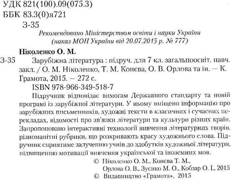 Відгуки про Зарубіжна література. 7 клас. Підручник