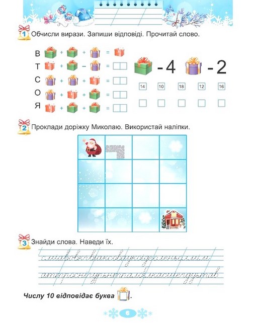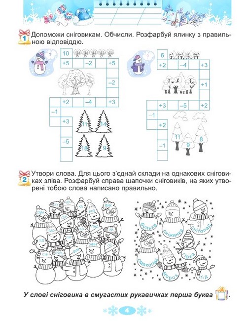У посібнику запропоновано інтегровані завдання навчального та розвивального характеру у формі квесту, які відповідають концепції Нової української школи й освітній програмі для 1 класу. Провідні персонажі - сніговики - допоможуть школярам весело, цікаво та змістовно провести зимові канікули, поєднати відпочинок з інтелектуальним розвитком, повторити вивчений матеріал та підготуватися до наступного навчального семестру.