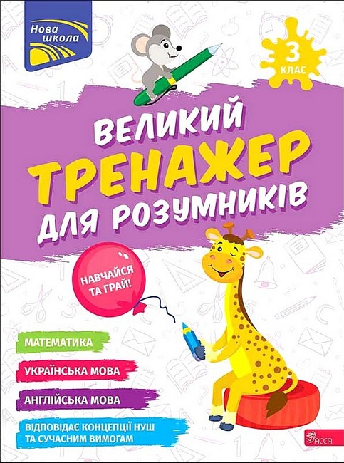«Великий тренажер для розумників» — це 96 яскравих сторінок пізнавальних завдань та цікавий спосіб подачі матеріалу відразу з трьох предметів!