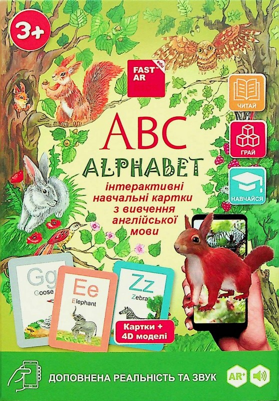 4D Навчальні картки "Жива Абетка ABC" для вивчення англійської мови. З доповненою реальністю та звуком