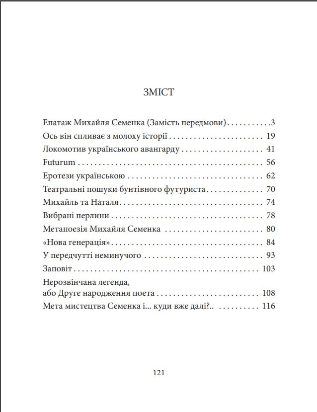 Михайль Семенко (1892—1937), основоположник і теоретик українського футуризму, поет, філософ, скрипаль, був трагічною і надзвичайно яскравою особистістю української літератури, невиправдано забутою у часи «соціалістичного реалізму». Все переплелося у його житті й творчості: революція як всесвітній переворот, революція як переоцінка художніх цінностей українського мистецтва, безкінечний пошук нового, незвіданого — як прорив українського мистецтва до європейського культурного простору.