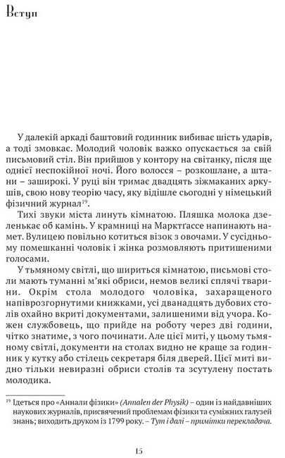 Особливо натхненним виявився для нього 1905 рік, про який і йде мова в романі-колажі Алана Лайтмена. Альберт Айнштайн надіслав у провідний науковий журнал Annalen der Physik чотири статті, які здійснили революцію у теоретичній фізиці. «Його науковий переворот мав глибоке підґрунтя. Усі складові його життєвого досвіду, здавалось, зійшлися, щоб утворити досконалу єдність. Прочитані у юності книжки, його незалежні дослідження, дружина-фізик, “Академія Олімпія”, розмови з Бессо. І настав час для його відкриття, яке об’єднало простір і час у чотиривимірну структуру часопростору» – пише біограф Айнштайна Юрґен Неффе.