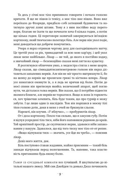 У своїй щирій біографії Агассі розказує про непрості стосунки з батьком, який одночасно лякав його та вишколив з нього переможця, про бунтарські вчинки в житті й на корті, про щоденну боротьбу із фізичним болем від постійних тренувань і про ставлення до гри, яка попри все стала сенсом його життя.