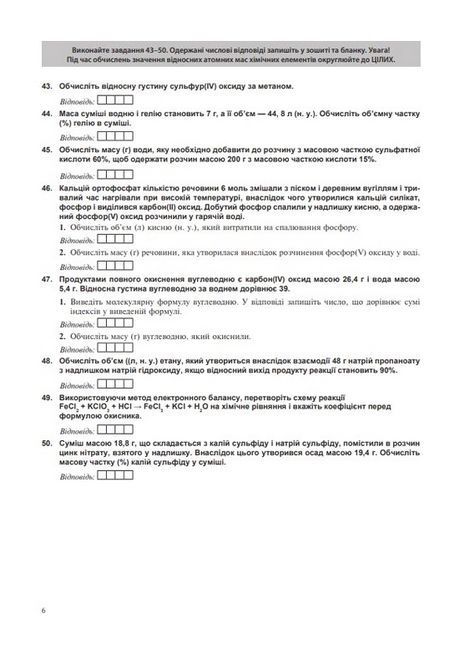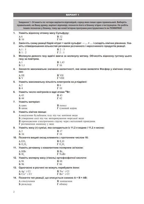 Метою пропонованого навчального посібника є організація самостійної роботи учнів при підготовці до зовнішнього незалежного оцінювання з хімії. У посібнику подано 20 варіантів завдань, які укладено за специфікацією ЗНО, а також бланк відповіді і матеріали для самоконтролю. Для учнів, учителів та вступників до вищих навчальних закладів.