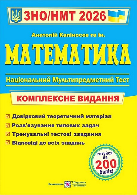 Посібник призначений для підготовки здобувачів повної загальної середньої освіти й абітурієнтів до ЗНО (НМТ). Його укладено відповідно до вимог програм, затверджених Міністерством освіти і науки України, та чинних підручників з математики.