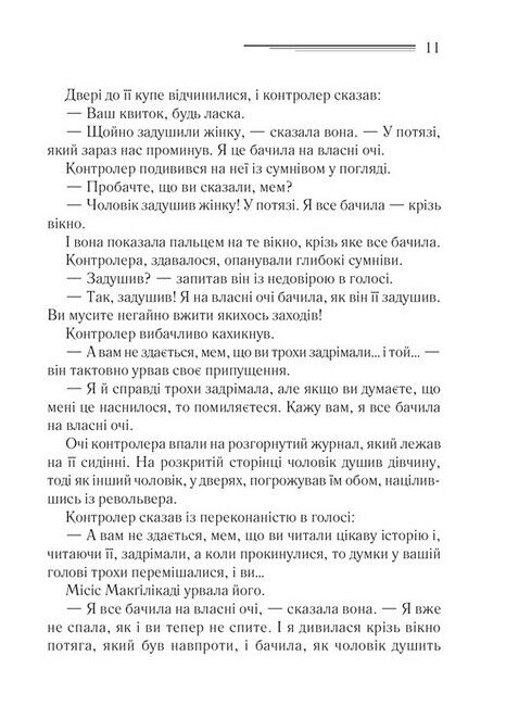 Найзухваліший злочин у потягу після «Вбивства у "Східному експресі"»! Подруга міс Марпл стає свідком того, як у купе чоловік душить жінку. Ані у вагоні, ані вздовж колії трупа не знайшли. Тож леді-детектив придивляється до найближчого до місця трагедії маєтку й добирає для його господарів служницю — наводити лад і шукати тіло. Це простіше, ніж виявити душителя серед завсідників Резерфорд-Холу. Але міс Марпл змусить убивцю зізнатися! Аґату Крісті знають у всьому світі як королеву детективу. Продано близько мільярда примірників її творів англійською мовою, ще один мільярд — у перекладі 100 іноземними мовами. Вона — найпопулярніший автор усіх часів. За кількістю перевидань її книжки поступаються лише Біблії та творам Шекспіра.