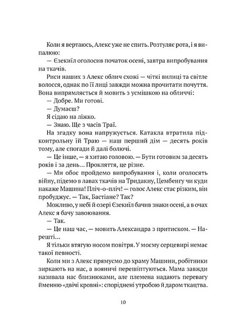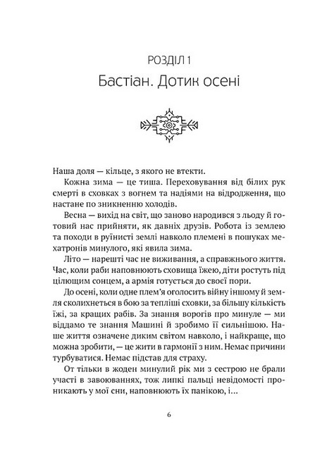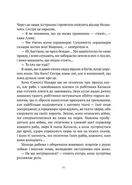 У постапокаліптичному світі роману Дарії Піскозуб людство знову живе в племенах, які воюють одне з одним за виживання, а загадкова Машина — все, що лишилося від цивілізації. Хтось хоче її олюднити, хтось бореться проти неї, але вона вічна і, здається, спроможна знищити те, що мала би оберігати…
